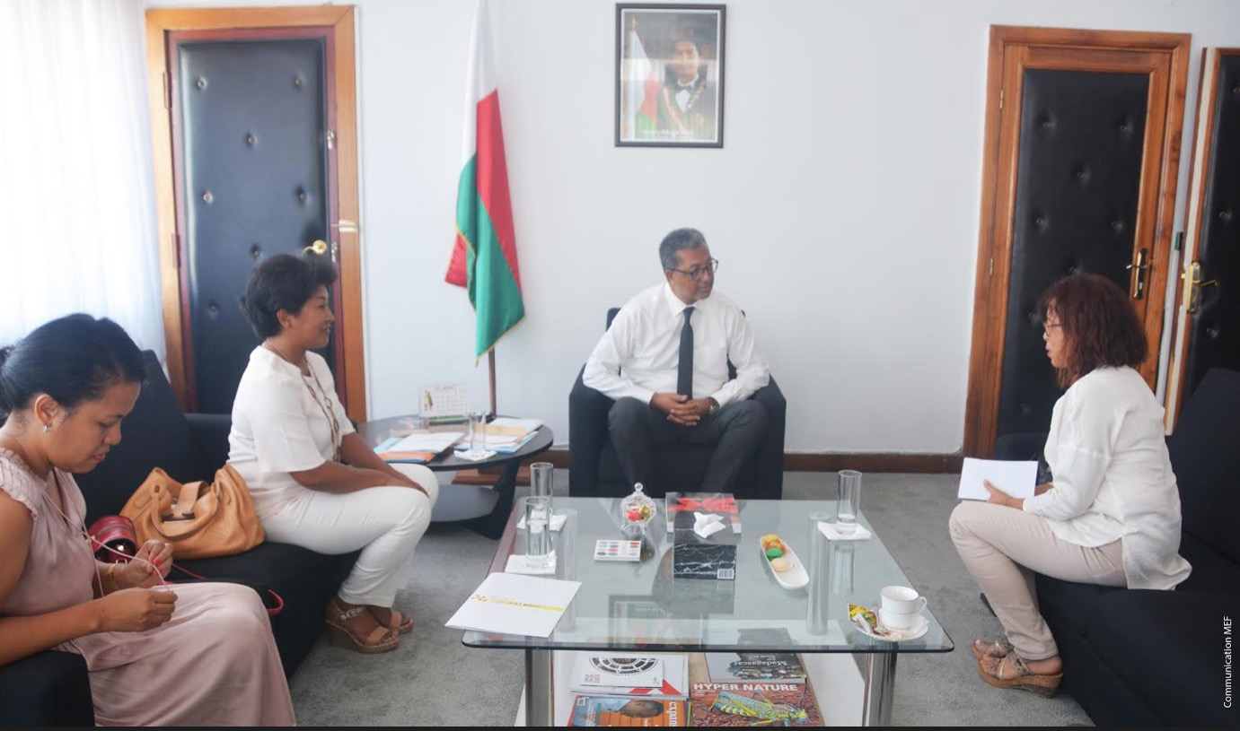 Développement du secteur économique : une étroite collaboration entre le Ministère de l’Economie et des Finances et l’EFOILe 2 avril 2019, le Ministre de l’Economie et des Finances, Richard RANDRIAMANDRATO a tenu une réunion avec le réseau régional des femmes entrepreneurs EFOI Madagascar. Cette association, qui regroupe des femmes entrepreneures, est chargée de promouvoir les entreprises membres tout en créant des opportunités d’affaires et de développement des entreprises. Elle a également pour mission de développer les capacités managériales et techniques des dirigeantes. Et bien évidemment, l’EFOI défend les droits professionnels, sociaux et économiques des entreprises membres auprès des institutions et des organismes. A l’issue de la rencontre de ce jour, le Ministre de l’Economie et des Finances s’est engagé à appuyer l’EFOI dans ses activités de sensibilisation et de communication sur les procédures relatives aux finances publiques. Les membres de l’EFOI, mais également les femmes entrepreneurs de divers secteurs d’activités (agro-alimentaire, textile, artisanat, tourisme, infrastructure, nouvelles technologies, …) bénéficieront de formation et d’appui technique, plus particulièrement sur les procédures douanières et fiscales mais également en matière de dépenses publiques. Et ce, en vue de collaborer étroitement avec elles dans leurs activités économiques.