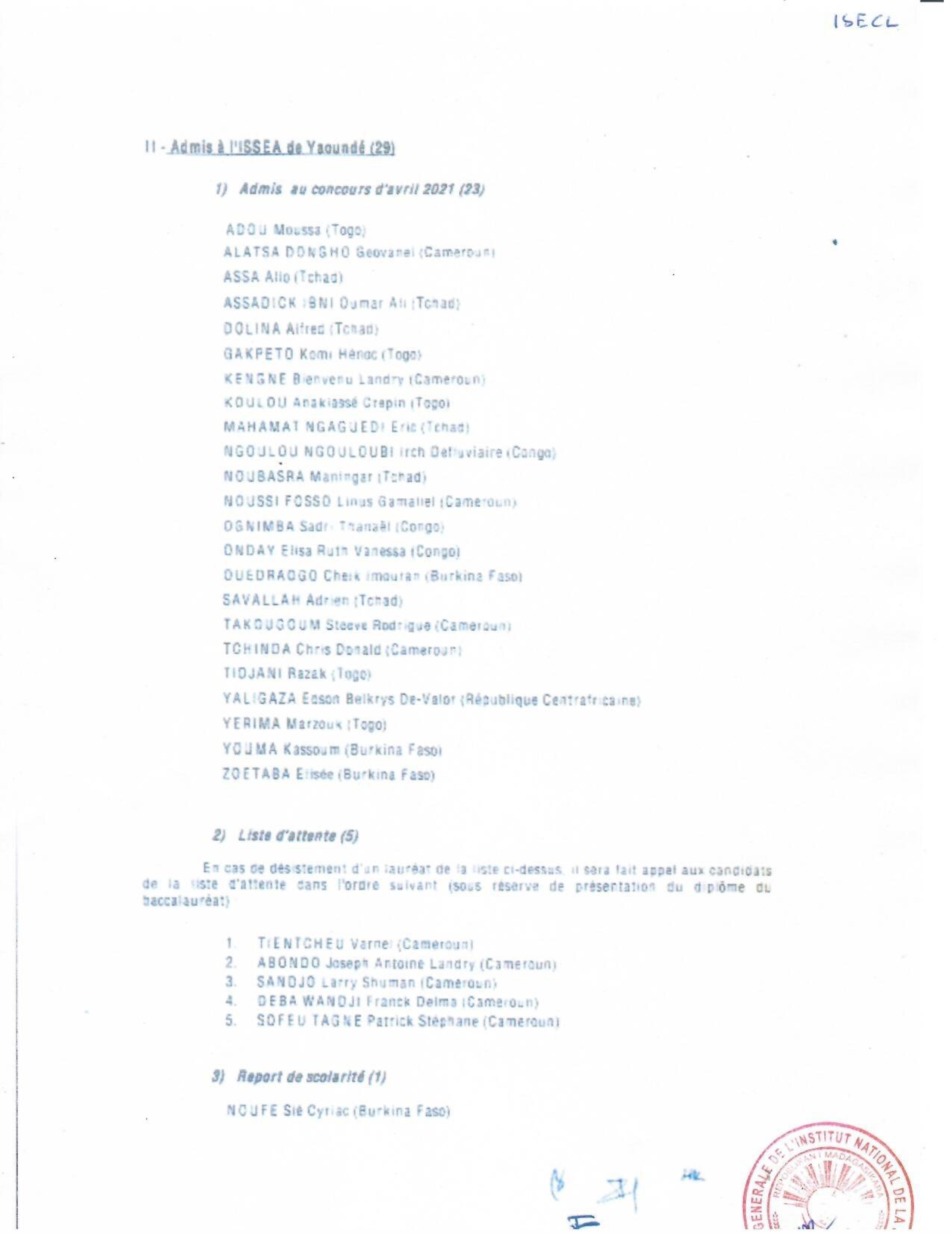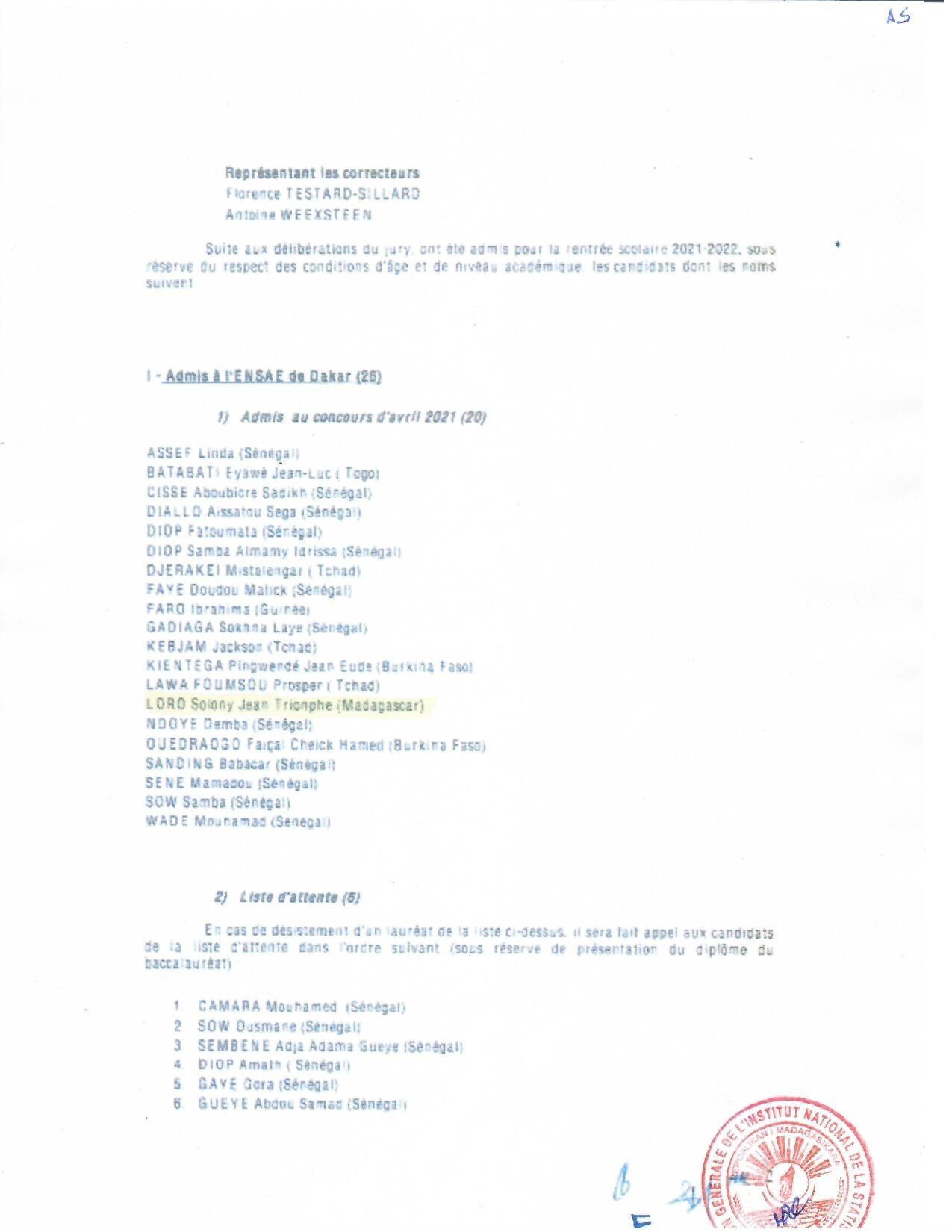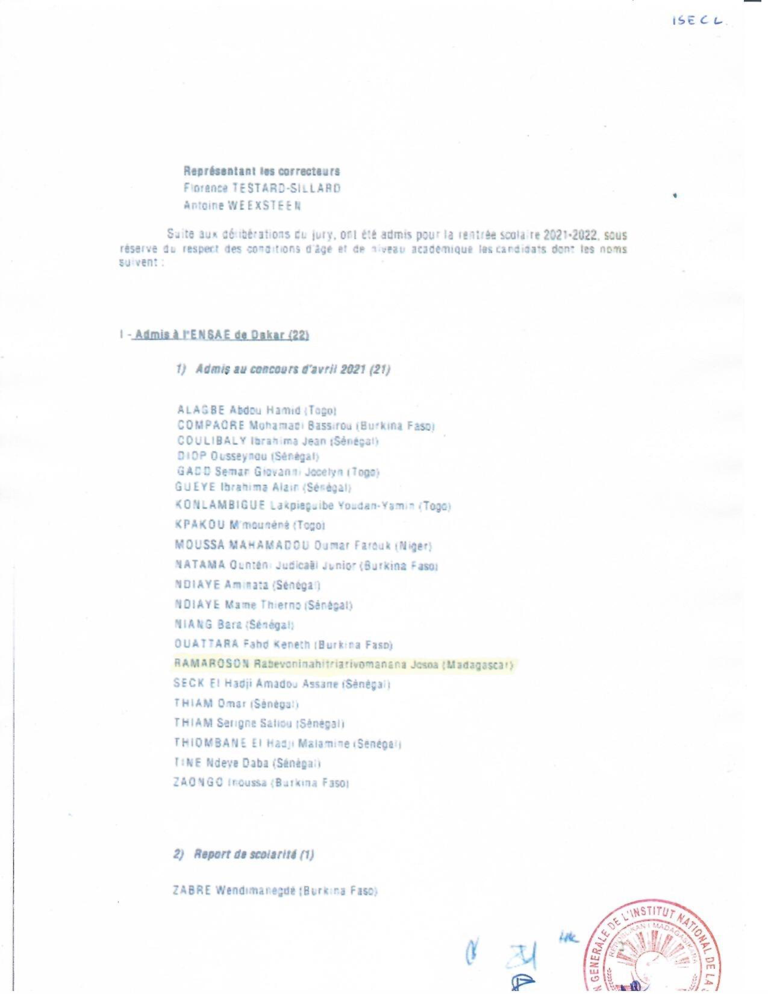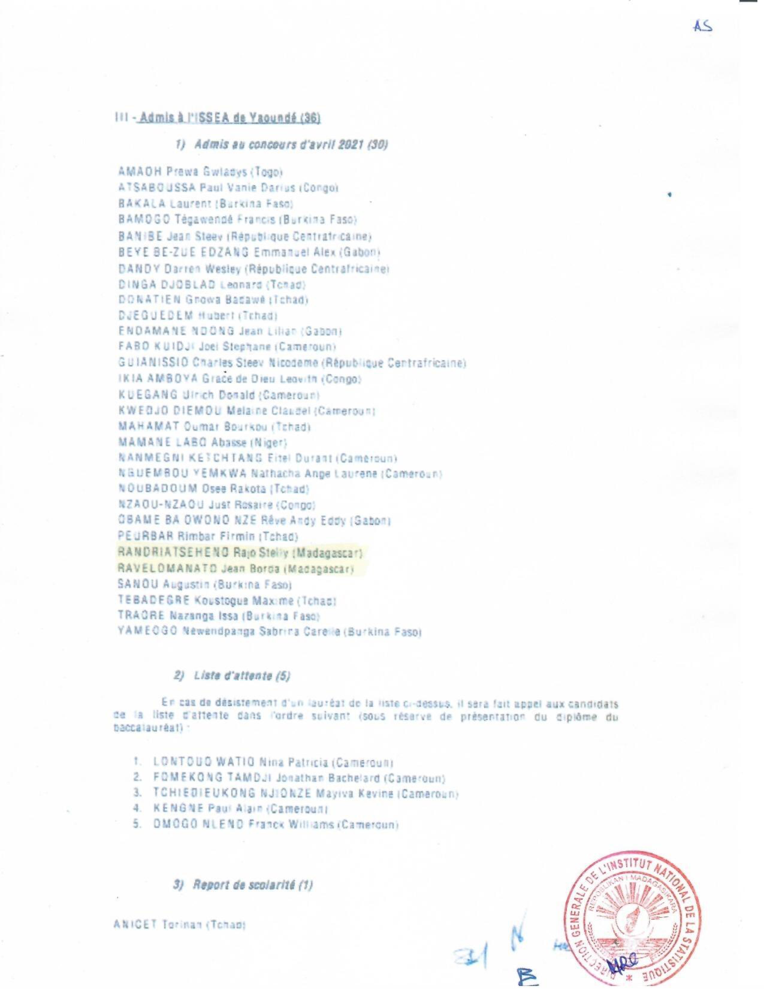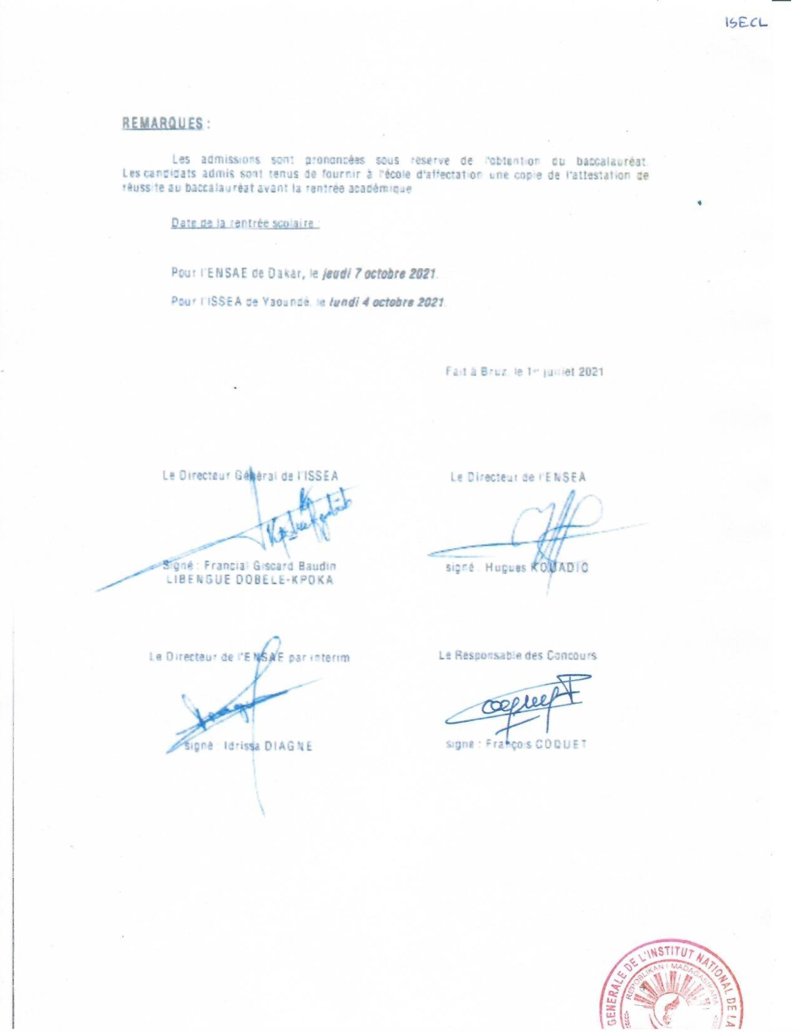 INSTAT : Résultats des concours pour les candidatures en IFORD, ISE et AS La liste des candidats admis au concours pour le recrutement d' Élèves en Master Professionnel en Démographie, niveau I à l'IFORD, session de mai 2021 (i), d’ Élèves Ingénieurs Statisticiens Économistes (ISE) cycle long pour l'année scolaire 2021-2022 (ii) et d’ Élèves Analystes Statisticiens (AS) pour l'année scolaire 2021-2022 (iii), est publiée. Toutes nos félicitations aux candidats admis.