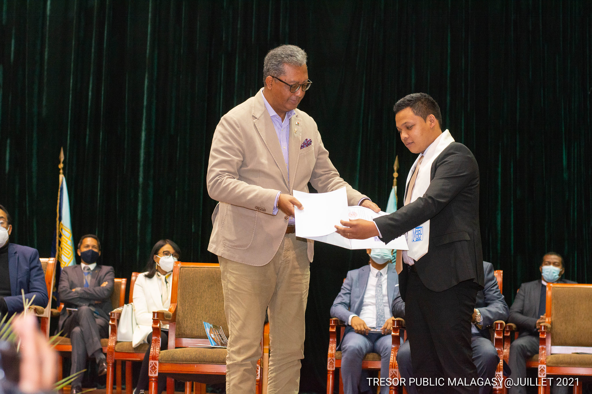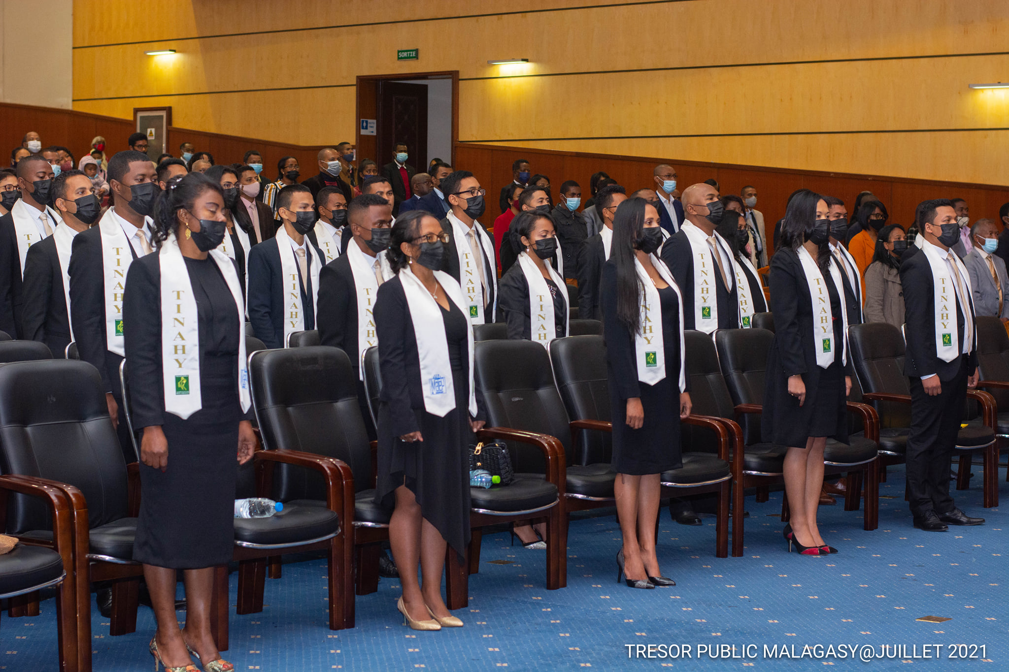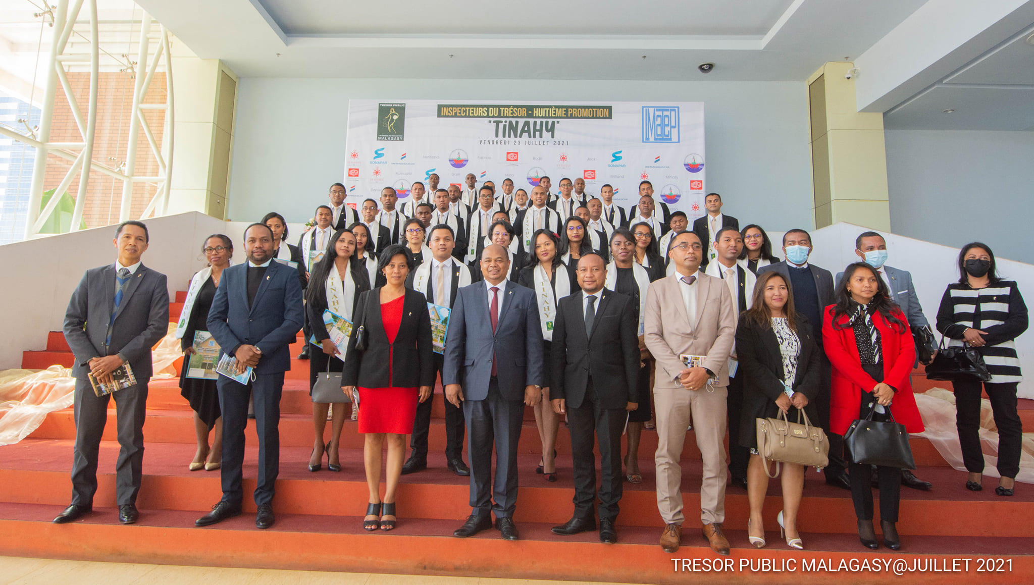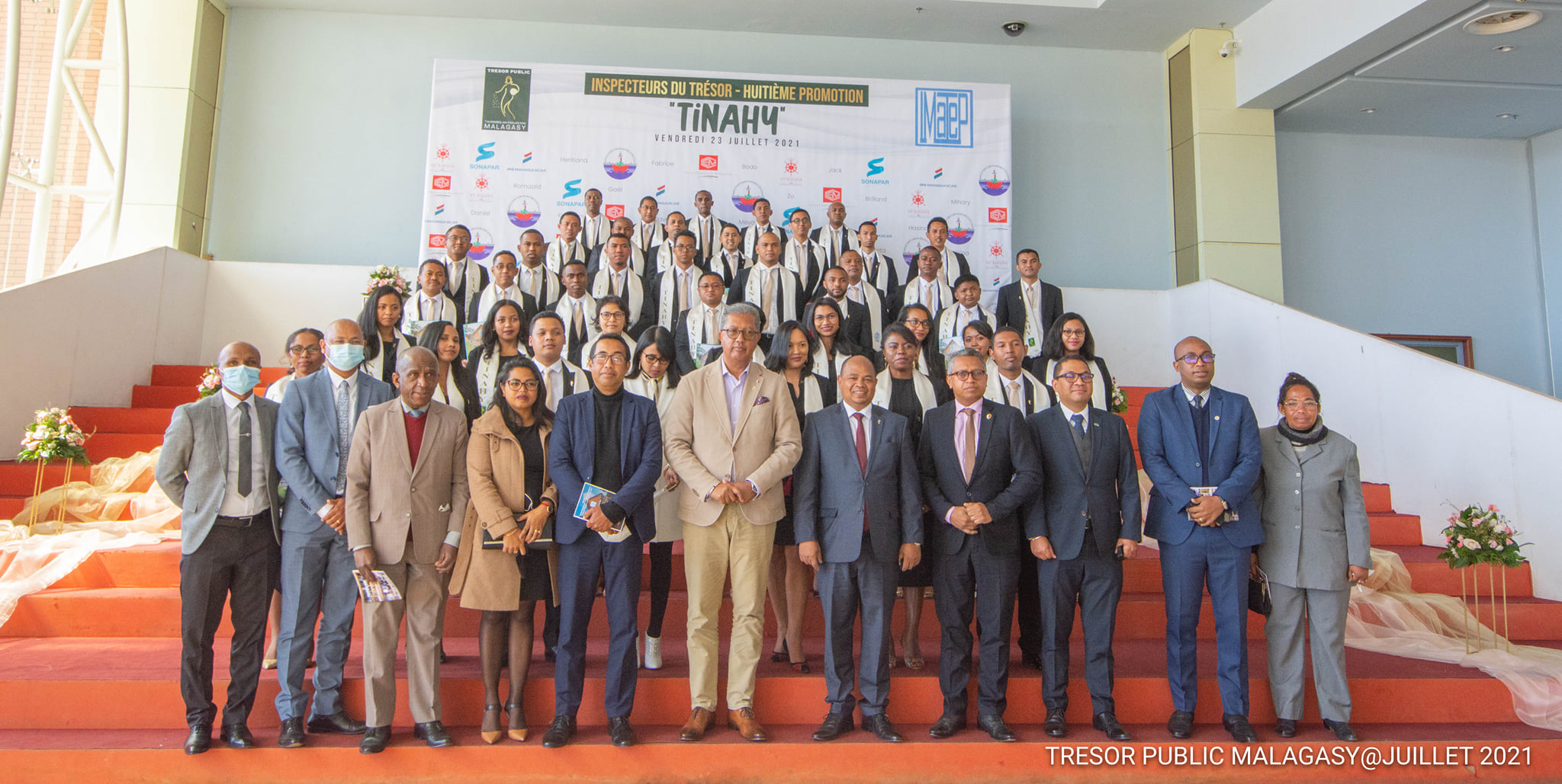 Sortie de la promotion « TINAHY », le Trésor Public accueille 40 nouveaux inspecteurs Un grand jour. La journée du 23 juillet 2021 a été marquée par la cérémonie de sortie officielle et de remise de diplôme aux Inspecteurs du Trésor de la huitième promotion baptisée sous le nom de « TINAHY ». L’évènement a eu lieu au Centre de Conférence International Ivato en présence du Ministre de l’Economie et des Finances , Richard Randriamandrato, du Secrétaire Général du Gouvernement, Indriamanga Miadatsanta Rakotoarisoa, du Secrétaire Général du Ministère de l’Economie et des Finances, Rindra Hasimbelo Rabarinirinarison, ainsi que des hauts responsables auprès du Ministère du Travail, de l’Emploi, de la Fonction publique et des Lois sociales. Le Directeur Général du Bianco Laza Eric Donat Andrianirina et le Président de la Cour des Comptes, Jean De Dieu Rakotondramihamina ont aussi assisté à la cérémonie. Et bien sûr une forte délégation du Trésor ¨Public, dirigée par son Directeur Général, Ihaja Ranjalahy, a été présente sur les lieux pour accueillir ces nouveaux cadres du Trésor Public. « Le Président de la République et le Premier Ministre s’attendent à ce que les fonds publics soient utilisés à bon escient. Plusieurs réformes nous ont été confiées, si je ne cite que la question de rapatriement de devises. Vous les Inspecteurs du Trésor et spécialement vous qui êtes de la nouvelle génération, avez un important rôle à jouer dans leur réalisation » s’est adressés le Ministre de l’Economie et des Finances, Richard Randriamandrato, qui est aussi le parrain de cette promotion, aux nouveaux Inspecteurs du Trésor. Le Directeur du Général du Trésor (DGT) a pour sa part remercié l’Institut Malgache des Techniques de Planification (IMATEP) pour la qualité de leur formation, qui jusque-là répond aux attentes du Trésor Public Malagasy. Tout comme le Ministre, il a donné un avant-goût du travail qui attend les nouveaux inspecteurs. Ils vont être amené à traiter les dossiers relatifs aux missions dévolues au Trésor Public, comme l’a rappelé le DGT, telles que la gestion de la dette publique, la gestion des participations financières de l’Etat, la tutelle de la finance extérieure ou le cadrage macro-économique par l’élaboration du Tableau des Opérations Globales du Trésor. La gestion financière et comptable de l’Etat, des collectivités territoriales décentralisées et des établissements publics à travers les postes comptables supérieurs du Trésor présents auprès des 22 régions fait aussi partie des principales missions de ce département du Ministère de l’Economie et des Finances. Il en est de même pour la bonne gouvernance financière, d’où l’existence d’une direction dédiée spécifiquement à l’audit et le contrôle des opérations des organismes publics. Néanmoins les responsables ne sont pas inquiets quant à la capacité de ces 40 nouveaux Inspecteurs du Trésor. En effet, comme l’a rappelé le Directeur Général de l’IMATEP, ils ont brillé au concours organisé en 2018 qui a enregistré 3529. Ils ont donc toutes les capacités requises pour occuper leur fonction à venir. Ils vont d’ailleurs être amenés à occuper des postes de responsabilité auprès de tous les départements du Trésor public La cérémonie a été clôturée par la remise de « pins» aux nouveaux Inspecteurs par les membres du STAFF de la DGT pour marquer d’une manière officielle leur venue dans les rangs des Inspecteurs du Trésor.