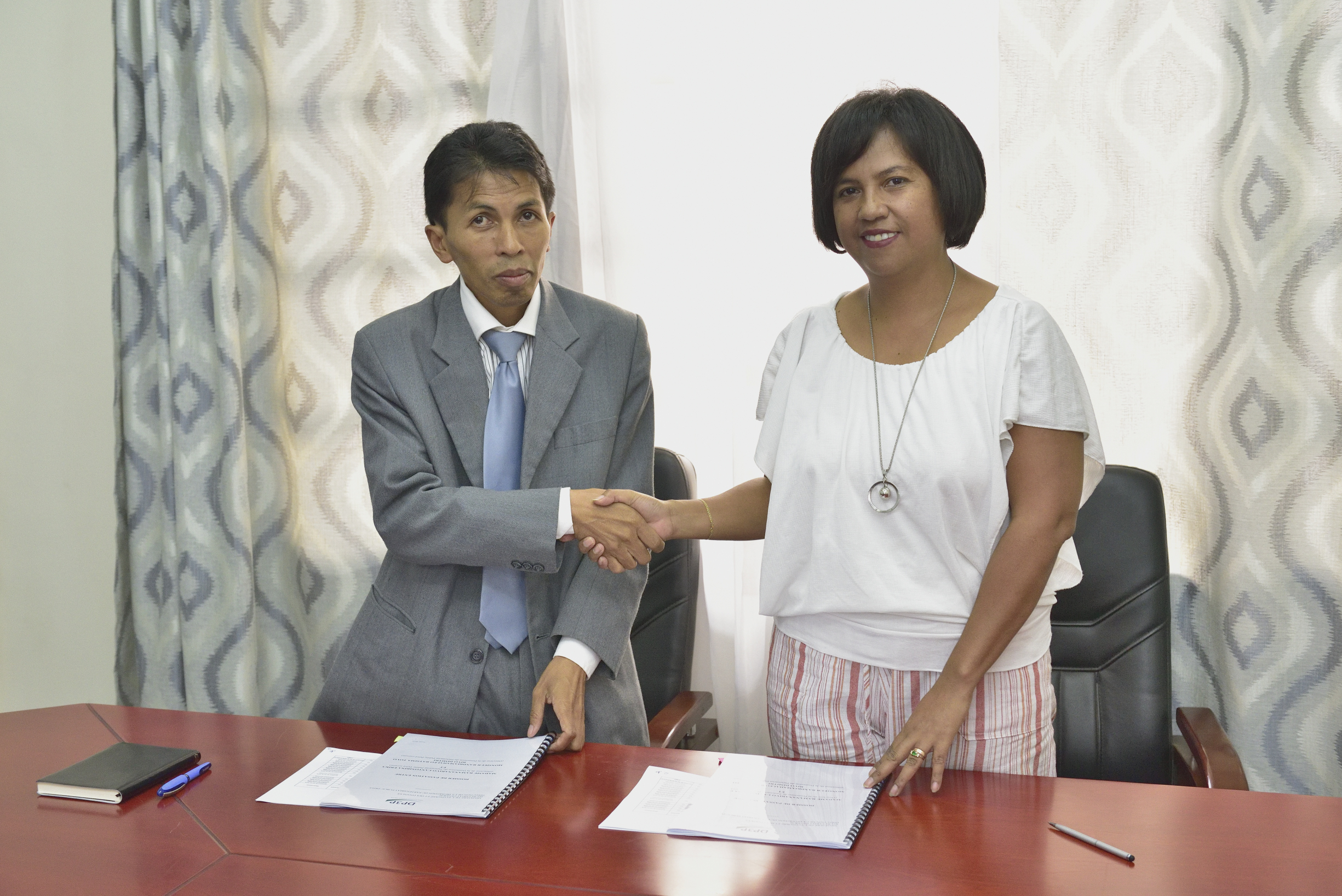 Au niveau du Secrétariat Général, la cérémonie de passation de service entre l’ancien Directeur de la Promotion du Partenariat Public-Privé (DP3P), RAMANANARIVO Erika et le nouveau Directeur RANDRIAMAHALEO Tovo s’est déroulée le lundi 01 avril 2019 dans les locaux de la Direction à Antsahavola, Antananarivo. L’occasion a été saisie pour dresser un bref résumé des réalisations de ce département rattaché au Secrétariat Général du Ministère de l’Economie et des Finances (MEF) depuis sa création en juillet 2014 jusqu’à ce jour. La loi sur le Partenariat Public-Privé (PPP) à Madagascar en fait partie. Elle a été adoptée en 2016 complétée par ses décrets d’application un an plus tard. Plusieurs actions ont été également entreprises par la DP3P pour la vulgarisation et la sensibilisation autour du partenariat public privé. Pour ce faire, le personnel de la Direction ont dispensé des sessions de formations auprès de différents Institutions et Ministères. Des départements du MEF ont été également appuyés dans le traitement des dossiers liés au PPP. Toujours dans le cadre de la gestion des compétences pour une meilleure efficacité au sein du Ministère et en son sein, le personnel de la Direction ainsi que les personnes ressources des départements techniques clés du MEF ont pu bénéficier de diverses formations sur des thèmes axés autour du PPP ou encore des finances publiques. Aux côtés de ses partenaires, la DP3P a pu réaliser diverses études dans les domaines juridiques relatifs au PPP et au climat des affaires à Madagascar et rendre également opérationnel le mécanisme de suivi des subventions au secteur privé. Pendant sa prise de fonction et en s’adressant aux Agents de la DP3P, le directeur entrant a mis l’accent sur la continuité des efforts entrepris jusqu’à ce jour. Il prévoit ainsi une opérationalisation effective du cadre juridique régissant le PPP et un renforcement continu et permanent des capacités toujours en matière de PPP et des finances publiques. Les acteurs de la Direction, les personnes ressources au niveau du MEF et des autres Ministères en seront les principaux bénéficiaires. |