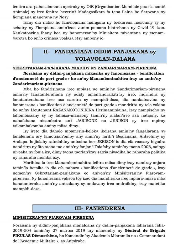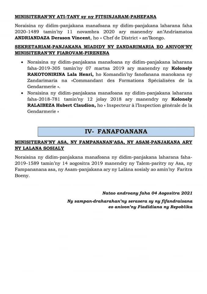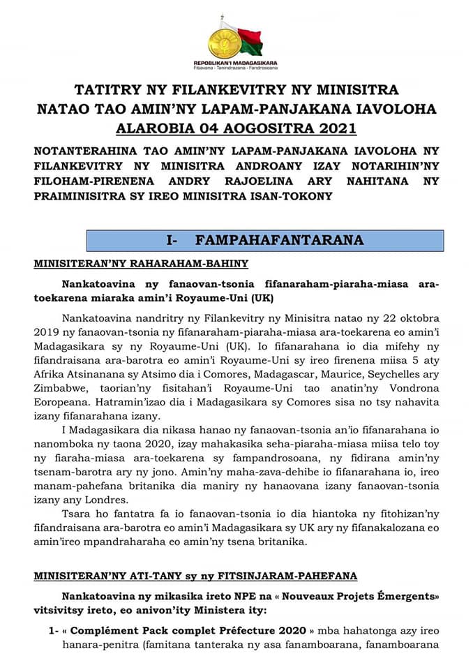Tatitry ny Filankevitry ny Minisitra natao ny alarobia 04 Aogositra 2021 ![]() ![]() ![]() ![]() |