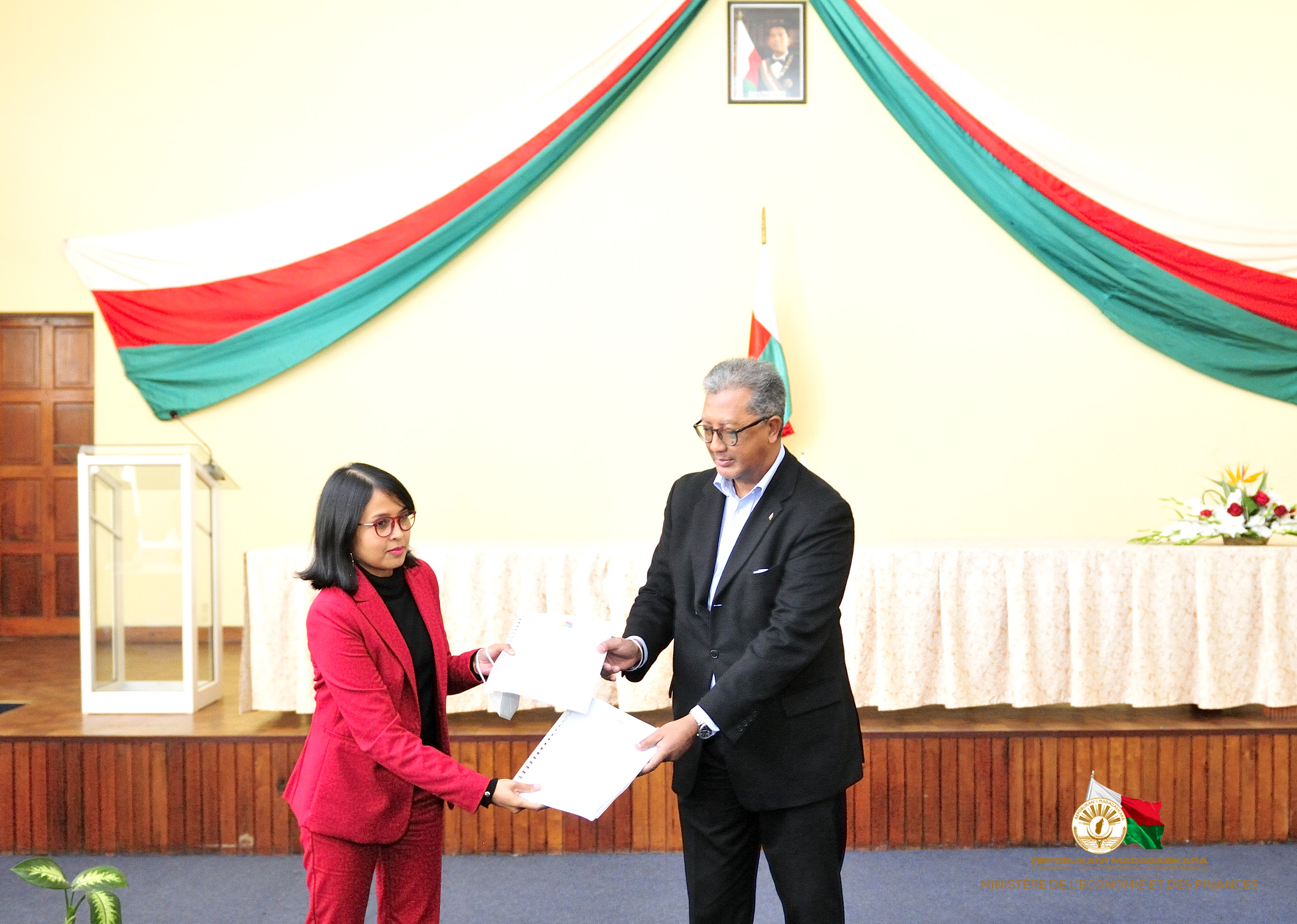 Ministère de l’Economie et des Finances : la Ministre nouvellement nommée investie dans ses fonctions Conformément au Décret n°2021-822 du 15 août 2021 portant nomination des membres du gouvernement, Madame Rindra Hasimbelo RABARINIRINARISON accède à la fonction de Ministre de l’Economie et des Finances. Elle succède ainsi à Monsieur Richard RANDRIAMANDRATO qui a occupé le poste depuis le 24 janvier 2019 à ce jour. Avant cette nomination, elle a occupé divers postes au sein du Ministère, notamment Secrétaire Général allant du mois de février 2020 à ce jour mais également Présidente de la commission nationale des Marchés auparavant. En application à cette nomination, La passation de service entre le Ministre sortant, et le Ministre entrant, s’est tenue le 16 août 2021 dans les locaux du Ministère de l’Economie et des Finances à l’immeuble Plan Anosy. Suivant l’article premier du décret n°2019-093 du 13 février 2019 fixant les attributions du Ministre de l’Economie et des Finances ainsi que de l’organisation générale de son Ministère, le Ministre de l’Economie et des Finances aura à assurer la coordination de la Politique Générale du ministère conformément à la Politique Générale de l’Etat. Dans cette nouvelle fonction, Madame le Ministre se chargera également, avec les Techniciens du MEF, de l’élaboration ainsi que de la mise en œuvre de la politique financière, fiscale et budgétaire de l’Etat.