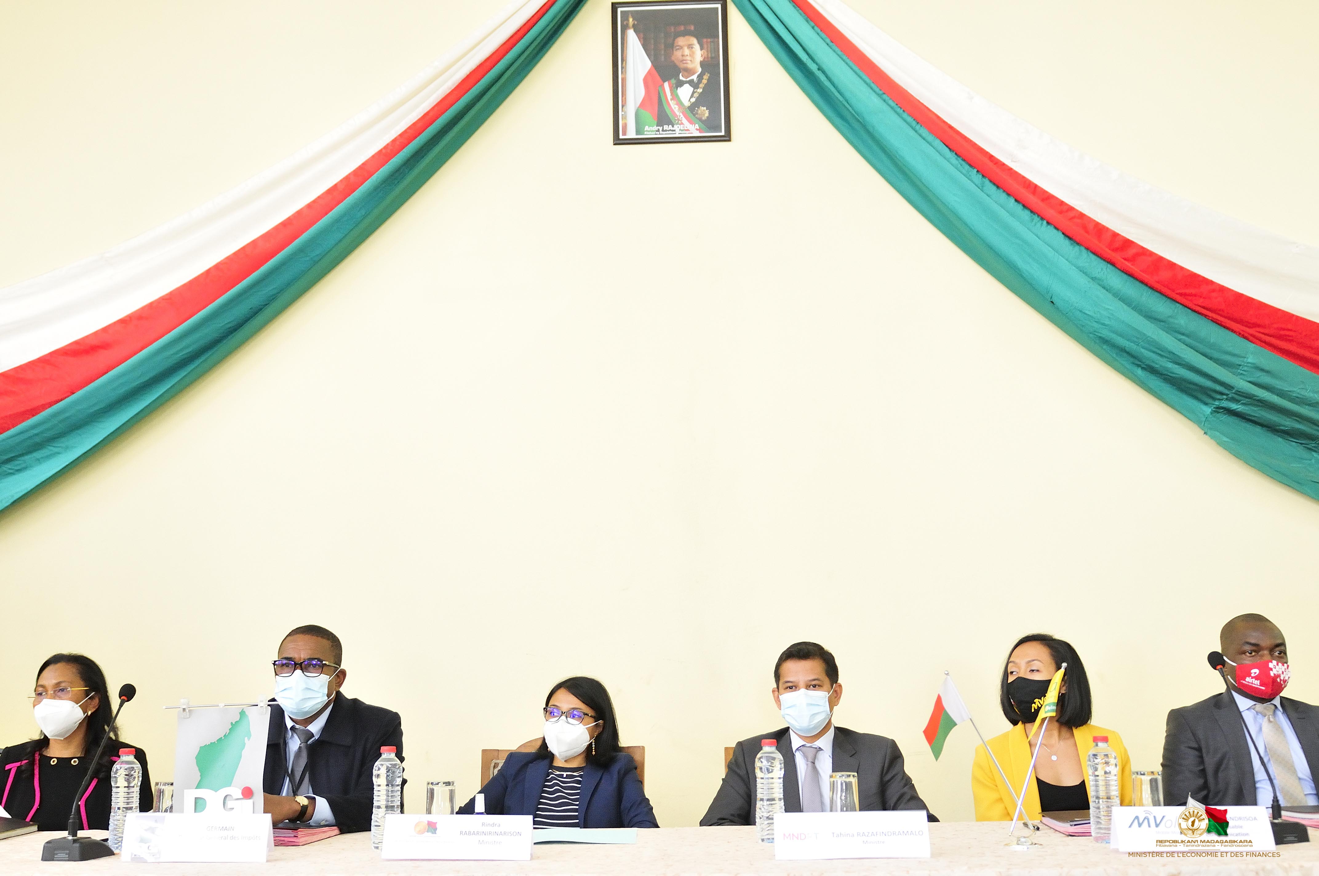 E-HETRAPHONE : LE MINISTERE DE L’ECONOMIE ET DES FINANCES LANCE OFFICIELLEMENT LE DEPLOIEMENT DU SERVICE DANS TOUT MADAGASCAR AVEC LES TROIS OPERATEURS MOBILE MONEY Anosy, 24 août 2021- La cérémonie de signature de conventions entre, d'une part la Direction Générale des Impôts (DGI), et l'Unité d'Exécution du Projet d'Inclusion Financière de Madagascar (PIFM) et, d'autre part les trois Etablissements de Monnaie Electronique (EME) à savoir : Airtel Mobile Commerce Madagascar, Orange Money Madagascar et MVola S.A., marque le lancement officiel du déploiement du service E-Hetraphone dans tous les centres fiscaux de Madagascar. Ces conventions définissent l’extension des conditions et des modalités du partenariat entre la Direction Générale des Impôts et les EME pour la collecte de l’Impôt Synthétique par Mobile Money. En effet, elle s’inscrit dans le cadre de l’amélioration du service rendu aux usagers prônée par le Gouvernement via le Ministère de l’Economie et des Finances, à travers la dématérialisation des procédures administratives. Annoncée par Madame le Ministre, lors de la passation de services avec son prédécesseur comme un des différents axes d’amélioration de son département, le service de la digitalisation de l’Administration de ce genre permet de pallier les dérives financières dans la gestion des fonds publics. E-HETRAPHONE, UN MOYEN SIMPLE POUR REGULARISER SES IMPÔTS Dénommée application E-Hetraphone, ce service gratuit, désormais mis à l’échelle nationale à partir de cette année, particulièrement adapté aux petits contribuables, offre la possibilité de déclarer et de payer l’impôt synthétique par Mobile Money sur tout le territoire malagasy. Cette extension nationale fait suite à un projet pilote concluant, avec les opérateurs MVola en 2017 et Orange Money en 2018, et déployé dans tous les centres fiscaux de la Région Analamanga depuis le contexte sanitaire dû au CoVid-19. Concrètement, les contribuables n’ont plus à se déplacer pour déclarer et payer leurs impôts, ils peuvent l’effectuer à tout moment, où qu’ils soient via leur téléphone mobile. Ainsi, après chaque paiement, le contribuable recevra un message téléphonique (SMS) à titre de confirmation et qui fait, en même temps, office de récépissé de paiement. La traçabilité est assurée grâce à l’envoi automatique de l’état détaillé des opérations par les trois établissements de Mobile Money à l’Administration Publique. Le montant intégral des impôts, droits et taxes payés est viré quotidiennement par ces établissements sur le compte bancaire au nom de la DGI ouvert à la Banky Foiben’i Madagasikara. Par ailleurs, cette activité matérialise une des composantes du Projet PIFM www.pifm.mg qui consiste en la numérisation des transactions pour accroître l’utilisation des comptes de transactions en vue de l’Inclusion Financière à Madagascar. L’appui du Projet, grâce au financement de la Banque Mondiale, comporte la prise en charge, de façon dégressive, de sa mise en œuvre jusqu’au terme du projet prévu en 2022. Pour l’information et l’adhésion des parties prenantes, à savoir l’Administration et ses agents, le secteur privé, les contribuables et le grand public, une campagne de sensibilisation et de communication accompagnera cette mise en place de E-Hetraphone dans les prochains jours et semaines. Contact : Imiangaly RANDRIANOMANANA, chef de la Cellule de Communication, DGI, 032 12 015 03