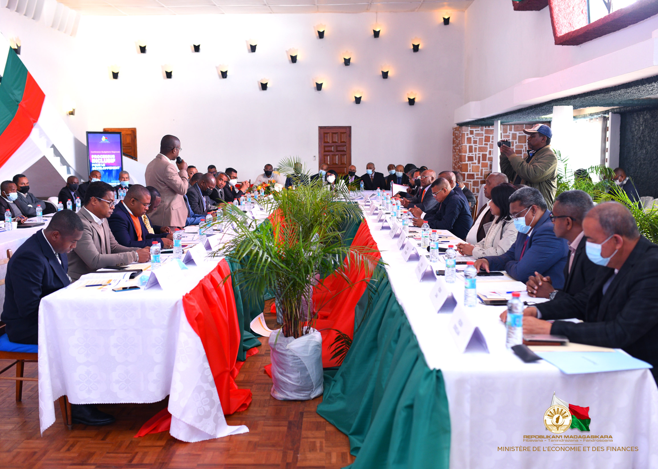 Préparation de la Loi de finances 2022 : les Gouverneurs de regions impliqués dans le processus Dans le cadre de la préparation de la Loi de Finances 2022, une série de Conférences Budgétaires Régionales ont eu lieu au mois de février 2021, au niveau des vingt-deux régions. Ces conférences ont eu pour leitmotiv de collecter les propositions de doléances des régions en vue de la préparation du budget rectificatif, mais aussi de recenser les suggestions relatives à l’élaboration de la Loi de Finances Initiale 2022. Les propositions ainsi recueillies ont été envoyées au Ministère de l’Economie et des Finances au mois de mars 2021 et il s’agit dorénavant de les soumettre aux Gouverneurs. « La conférence budgétaire régionale est aussi destinée à recueillir les avis et propositions des gouverneurs. En effet, le processus de consultation ne sera complet et efficace que si les gouverneurs de région apportent eux-mêmes leur point de vue et définissent les projets prioritaires compatibles à la Politique Générale de l’Etat et au Plan Emergence Madagascar ».