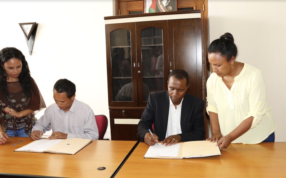 PASSATION DE SERVICE AU SEIN DE LA DGD : le nouveau Directeur des services extérieurs (DSE) prend ses fonctions ce jour Après la nomination, la passation de service au sein de la Direction des services extérieurs entre le Directeur sortant et le nouveau Directeur s’est faite ce jour. L’inspecteur Christophe SOJA RANDRIAMANANTENA succède à l’inspecteur Haja Miarantsoa RAKOTOARIMALALA. Le Directeur sortant a demandé à ce que la passation se fasse dans la norme et donc l’hymne de la Direction générale des douanes a été chanté suivi d’une prière. Il a ensuite commencé sa prise de parole en remerciant ses collègues de leur implication et dévouement dans l’accomplissement des missions au sein de la DSE, particulièrement les responsables dans chaque service de toujours s’être épaulés tant en conseils qu’en entraide : « soroka miara-milanaja ary tongotra miara-mamindra » a-t-il souligné. La nomination émanant du Gouvernement a –t-il dit est une bonne chose car elle inspire à de nouveaux efforts et à la continuité de toutes bonnes choses accomplies au niveau de l’Administration, c’est ainsi donc qu’il a félicité le nouveau Directeur pour ses nouvelles attributions et lui souhaite un service sans encombre en toute légalité et dans la continuité de l’entraide. Pour sa part, le nouveau Directeur des services extérieurs a exprimé sa reconnaissance face à son prédécesseur d’avoir insufflé un nouveau vent au sein de cette direction malgré le court délai (moins d’un an) tout en lui souhaitant le meilleur dans sa nouvelle fonction à lui aussi. « Je reprends fièrement le flambeau de la DSE et honorerai le service et les responsabilités que cela incombe » a souligné le nouveau directeur. La passation faite, le nouveau DSE s’est entretenu directement avec ses collègues.