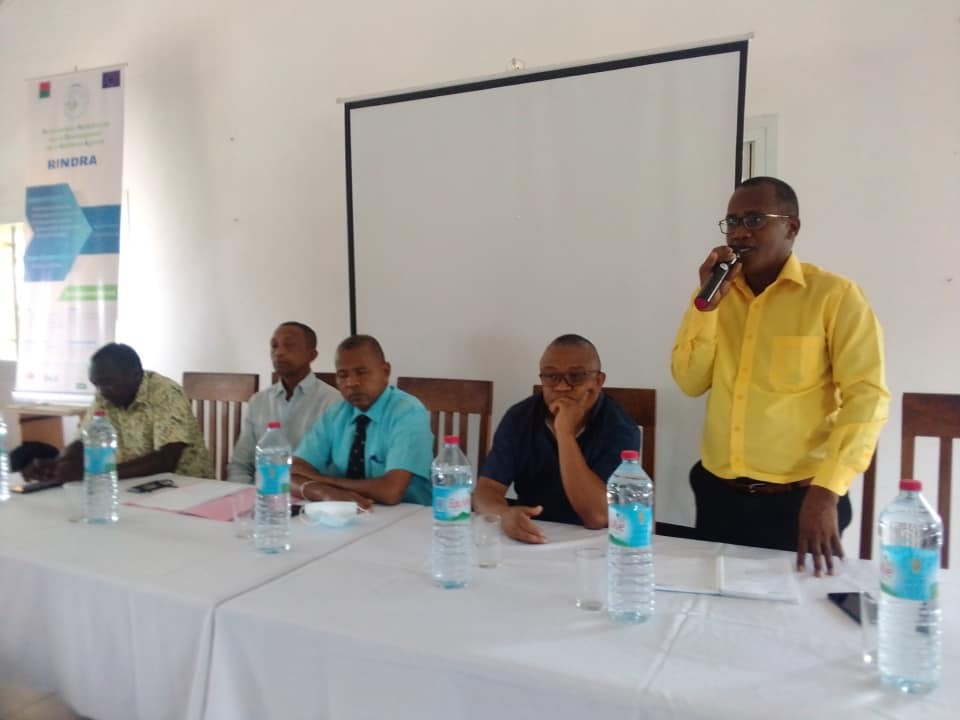 Programme Rindra : Appui à l’amélioration des services fournis aux éleveurs à travers l'atelier d’évaluation du référentiel destiné aux Agents de Santé Animale de Proximité ou Mpiompy Manampy amin'ny Asa Veterinera (MMAV) Un atelier d’évaluation du référentiel destiné aux Agents en Santé Animale de Proximité ou Mpiompy Manampy amin’ny Asa Veterinera (MMAV) s’est tenu à Toamasina les 07, 08 et 09 octobre 2021, financé par le Programme RINDRA ou Renforcement Institutionnel vers le Développement de la Résilience Agricole. Il s’agit d’un programme financé par l’Union européenne dans le cadre du Programme Indicatif National - 11ème FED. Des responsables du secteur de l’élevage ainsi que 60 vétérinaires issus de 6 régions ont participé à cette journée d’évaluation : Analamanga, Diana, Sava, Alaotra Mangoro, Analanjirofo et Atsinanana. Une évaluation des réalisations par rapport au référentiel MMAV mis en place depuis 2018 a été effectuée. Les observations des vétérinaires sanitaires sur ledit document sont en effet nécessaires en vue de l’améliorer et de pallier les écarts. Le but et le contenu de cet atelier coïncident avec la politique de l’Etat qui vise à fournir des services de proximité aux éleveurs dans ce domaine. Il convient de noter que cet atelier d'évaluation à Toamasina mené par les vétérinaires sanitaires (V.S) issus des 6 régions conclut les ateliers menés par tous les V.S dans les 23 régions de l'île. Les 5 premières séries qui ont eu lieu dans la Région Sud, Boeny, Vakinankaratra, Bongolava et Ihorombe par les V.S issus de 17 régions.