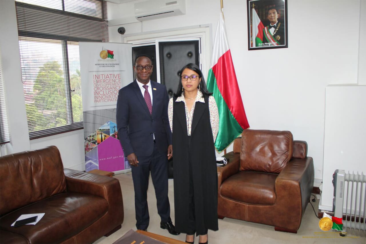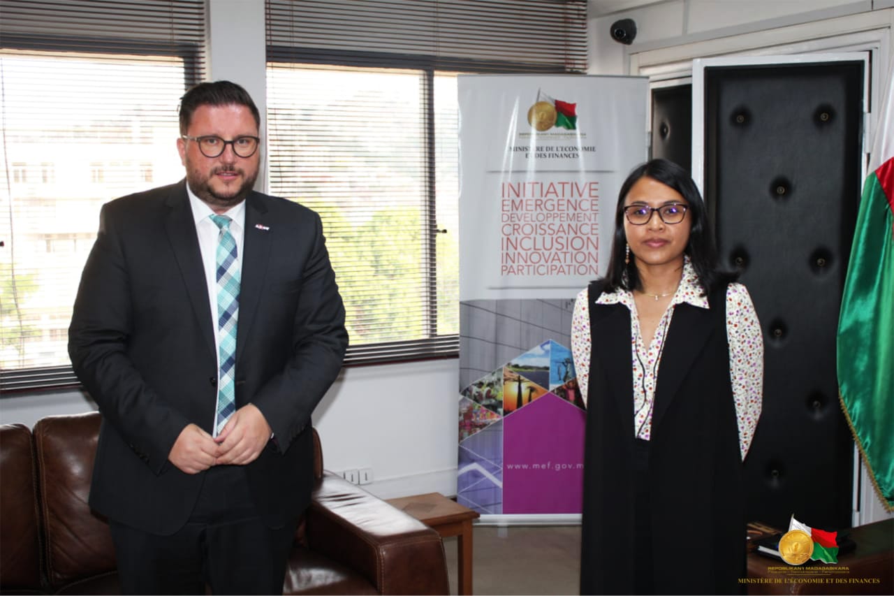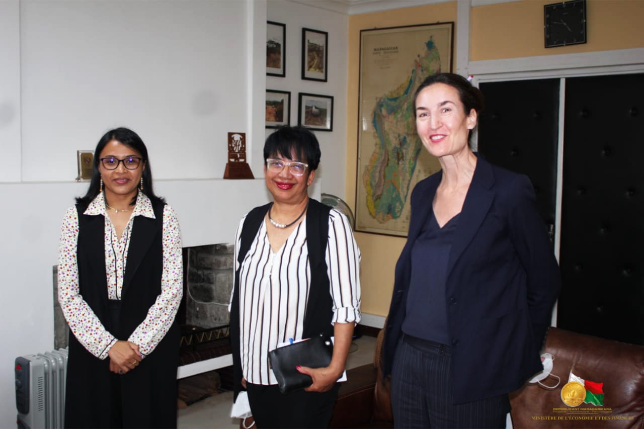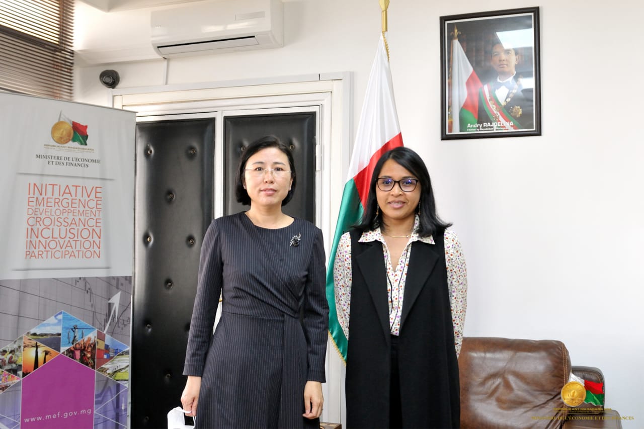 Des personnalités reçues au Ministère de l’Economie et Finances Le Ministre de l’Economie et des Finances, Madame Rindra Hasimbelo RABARINIRINARISON, a reçu le 04 novembre 2021, dans les locaux du Ministère à Antaninarenina plusieurs personnalités partenaires de Madagascar. La première à avoir été reçue est l’Ambassadeur de Chine, Son Excellence Madame Xiaomei GUO. La discussion entre les deux parties était cadrée sur la réalisation des projets avec la Chine. Entre autres, l’arrivée prochaine de la 23è mission médicale chinoise dont le protocole d’accord est en cours d’élaboration pour les régimes fiscaux de cette mission. Egalement évoqué, la situation financière de la construction du Boulevard de l’Europe, la situation de la construction de la route des œufs, le projet d’aménagement hydroélectrique de Ranomafana. Par ailleurs, le projet de modernisation des télécommunications, ainsi que la préparation du 8è Forum sino-africain du 29 et 30 novembre prochain dont le premier décaissement a été reçu la semaine dernière a été également au centre du sujet. Ensuite, elle a reçu l’Ambassadeur de la Confédération Suisse, Son Excellence Monsieur Chasper Sarott, qui a abordé avec elle le dossier des entreprises suisses installées à Madagascar mais aussi le wagon sur la ligne ferroviaire Fianarantsoa Côte Est. Après ces deux ambassadeurs, se sont respectivement enchainées les visites du Représentant résident du PNUD (Programme des Nations Unies pour le Développement) , Madame Natasha Van Rijin et le Représentant résident du FNUAP.(Fonds des Nations Unies pour la population), Monsieur Koffi KOUAME. Pour le cas du PNUD, la discussion a été axée sur la mise en place du fonds souverain : un consultant placé auprès de la Présidence sera payé par le PNUD à cet effet. Ont également été discutés la participation de Madagascar sur les questionnaires relatifs à l’Evaluation des financements du Développement ainsi que la situation du ZLECAF (Zone de Libre Echange du Continent Africain). Pour le FNUAP, l’accent a été mis sur les 30 millions USD de collaboration pour l’année 2022 et 2023. (Appui aux femmes vulnérables, notamment dans le Sud ; soutien au Ministère de la Santé Publique notamment les services de maternité, également, le renforcement des appuis pour Ministère de la Justice, le Ministère de la Santé Publique, le Ministère de la Population, le Ministère de la Jeunesse et des Sports sur les Violences Basées sur le Genre. Enfin, la mobilisation de ressources pour la planification familiale.)