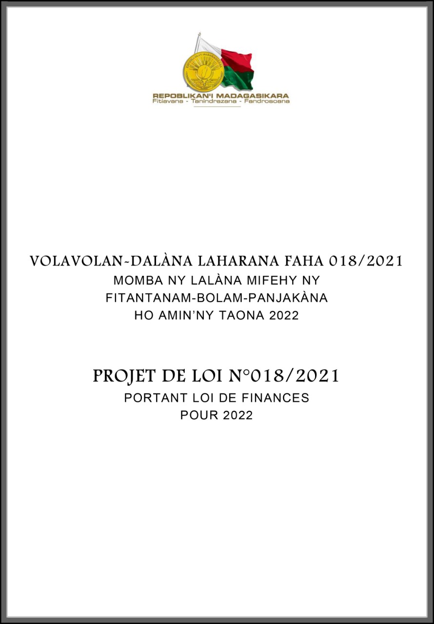 Le projet de Loi de Finances Initiale 2022 disponible Le projet de Loi de Finances Initiale 2022 disponible sur ce lien : http://www.mefb.gov.mg/page_personnalisee/index/menu/17 |