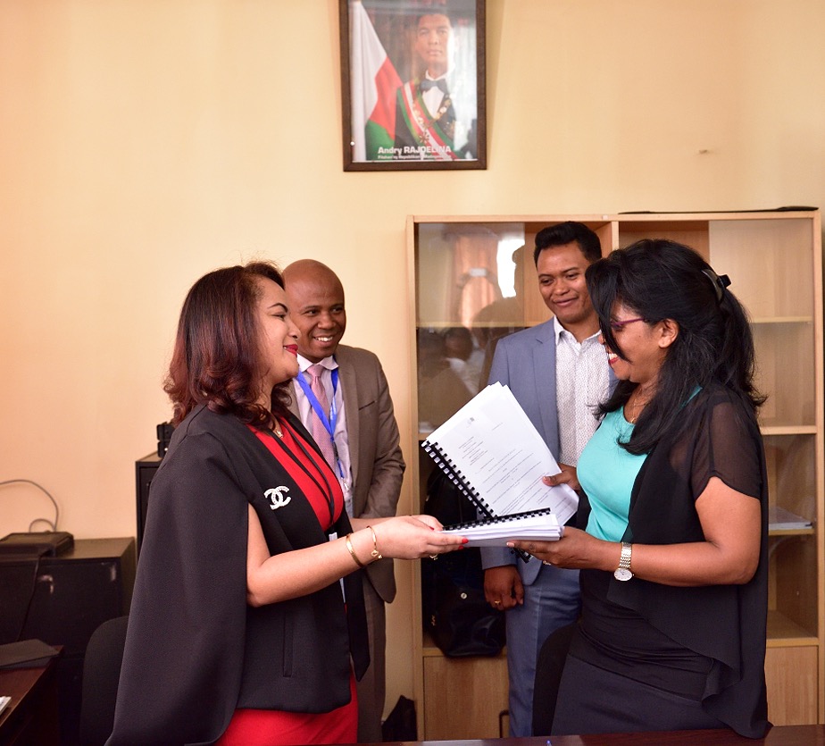 Antananarivo, le 19 avril 2019. Madame ANJARASOA Henri Nardie, récemment nommée pour diriger la Direction des Affaires Administratives et Financières (DAAF) de l’INSTAT, succède à Madame RAZAIARIZAKA Soanambinina Espérée à ce poste. La passation de services entre les deux Directeurs, entrant et sortant, s’est tenue ce jour dans les locaux de l’Instat à Anosy, Antananarivo.