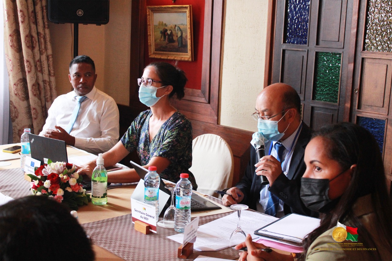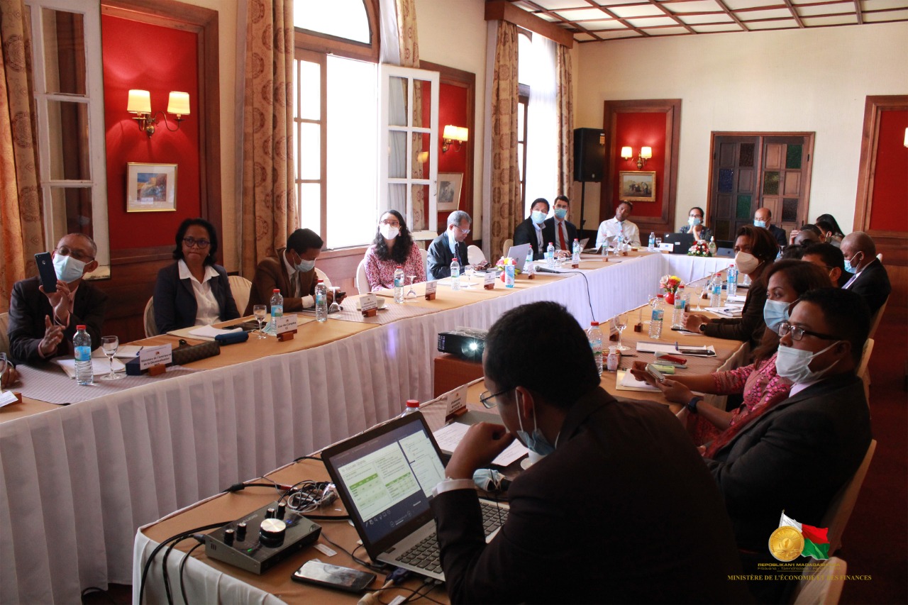 Antaninarenina, 16 décembre 2021 La deuxième réunion du cadre de Partenariat Multi-bailleurs s’est tenue ce 16 décembre à l’hôtel Colbert en présence du Secrétaire Général du Ministère de l’Economie et des Finances, Monsieur Andry RAMANAMPANOHARANA, représentant Madame le Ministre. Le panel des participants a également été élargi avec la participation de plusieurs acteurs, tels que la Cour des Comptes, les Ministères Sectoriels, les Organisations de la Société Civile et tous les départements du Ministère de l’Economie et des Finances. Cette réunion constitue un espace de dialogue entre les acteurs nationaux des finances publiques et des Partenaires Techniques et Financiers (PTFs) œuvrant dans ce domaine, les participants ont donc pu présenter les secteurs qui leurs incombent permettant une même compréhension de la situation et clarifier les points qui nécessitent discussions. La partie malgache a pu mettre en exergue les conclusions de la récente revue avec le Fonds Monétaire International (FMI) ; entre autres la situation des recettes et des dépenses, le soutien à la reprise économique, l’augmentation des recettes fiscales, l’amélioration de la composition des dépenses, la réduction des risques budgétaires, notamment ceux liées aux entreprises publiques. Les réalisations sur la mise en œuvre du fonds de riposte à la pandémie Covid-19 ont été également exposées. Ensuite, le Secrétaire Général a effectué un exposé sur le Projet de Loi de Finances 2022 qui est axé sur la réalisation des investissements pour l’émergence et la réalisation des promesses présidentielles. Ce projet s’inscrit dans un contexte de réouverture des frontières, l’accélération des activités, les investissements axés dans la mise en place d’un écosystème infrastructurel en soutien à la croissance et la maitrise de l’inflation. Ainsi, il n’a pas manqué de préciser que les dépenses dans les secteurs sociaux, productifs et industriels sont majoritaires dans les prévisions de dépenses de l’Etat afin d’assurer cette relance économique. Les Directeurs Généraux auprès du MEF ont également présenté les réalisations de 2021 ainsi que les perspectives d’actions pour 2022 au niveau de leurs départements respectifs. Les réformes des finances publiques n’ont pas été en reste avec la disponibilité sous peu du rapport PEFA définitif, prévu fin 2021. Les réalisations en matière de réformes des finances publiques ne sont pas encore tangibles sous formes de scores PEFA, toutefois les résultats de cet exercice serviront à mettre à jour le plan de réformes existant afin d’apporter les innovations nécessaires dans les domaines clés touchant directement au bien-être de la population. Ces travaux sont prévus commencer en début d’année prochaine. D’ailleurs, un portail dédié au suivi des réformes de GFP est ouvert sur le site du MEF (www.mef.gov.mg/page_personnalisee/index/reformes/44) et sera amélioré pour contenir les informations/documentations liées aux réformes de GFP. Un effort de coordination et de suivi des appuis des PTFs sera fourni au sein du MEF afin de mieux allouer et répartir les ressources provenant des PTFs. L’après-midi a été l’occasion pour les PTFs d’exposer et de discuter des réalisations en matière d’assistance technique ainsi que les engagements en terme de programmation de leurs appuis. La réunion leur a permis de présenter leurs actions respectives. Ce fut également l’occasion de s’accorder sur les interventions aux fins d’une meilleure synchronisation eu égard à l’état des lieux fait par la partie nationale. Les partenaires ont fait montre de leur intérêt à participer à la mise en marche des réformes durant cette réunion et se sont positionnés dans les domaines qui les intéressent. Les démarches pour la concrétisation de ces engagements seront enclenchées par la suite. Sommes toutes, une fenêtre d’opportunités s’ouvre à nous malgré les aléas que nous traversons actuellement avec : une volonté réformatrice du Gouvernement, la disponibilité des résultats PEFA pour mettre à jour les réformes. Tous les Partenaires Techniques et Financiers qui ont été présents ont renouvelé leurs souhaits à s’aligner et à apporter leurs contributions dans les priorités de réformes poursuivies au sein du Ministère de l’Economie et des Finances. Il est à signaler que la présidence du Cadre de Partenariat est assurée par l’Union Européenne, en la personne de Mme Mailan CHICHE, Chargée de Programme chargée de la Gouvernance. La prochaine réunion du Cadre de Partenariat est prévue se tenir en Juin 2022.